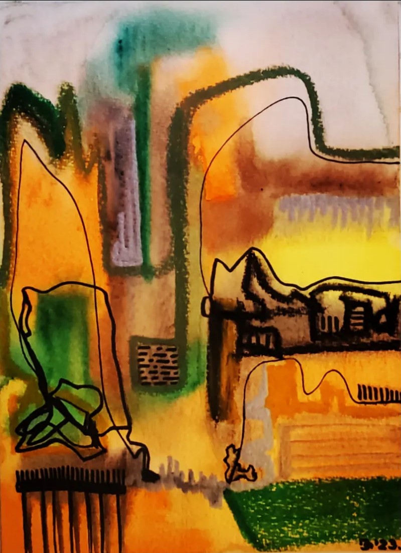 Abstract maze (19x26) - Aquarel and mixed media on cotton paper - Abstract work by Marzena Jotson