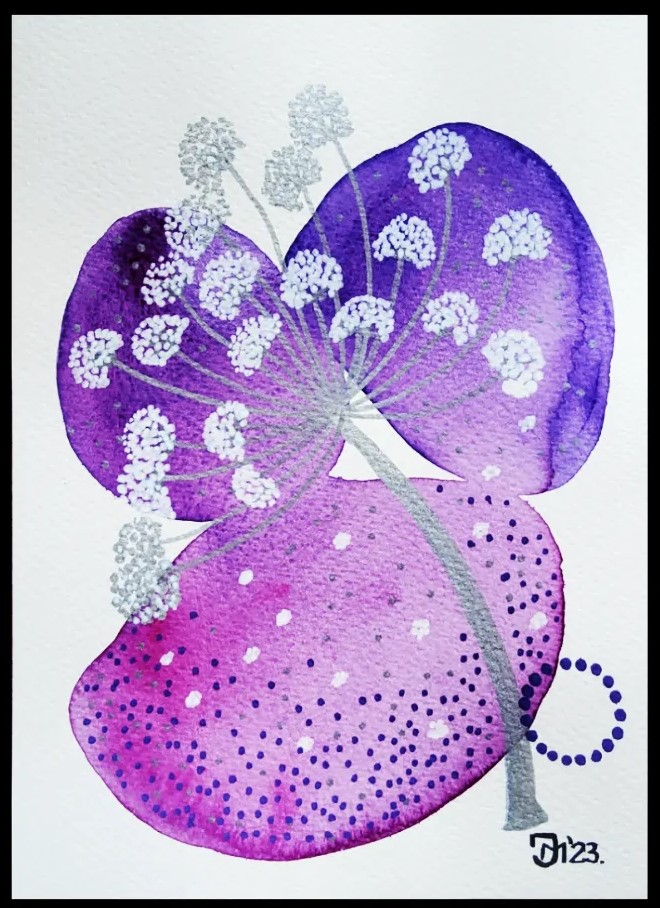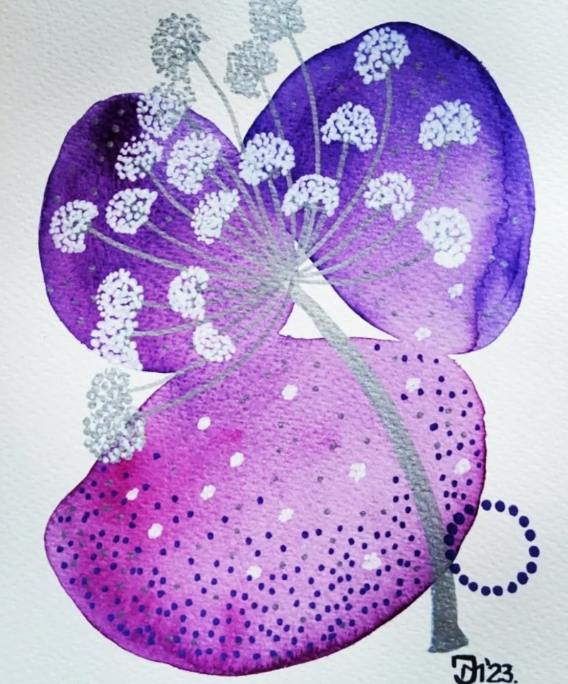 Dandelions (19x26) - Aquarel on cotton paper + mixed media - Abstract work by Marzena Jotson