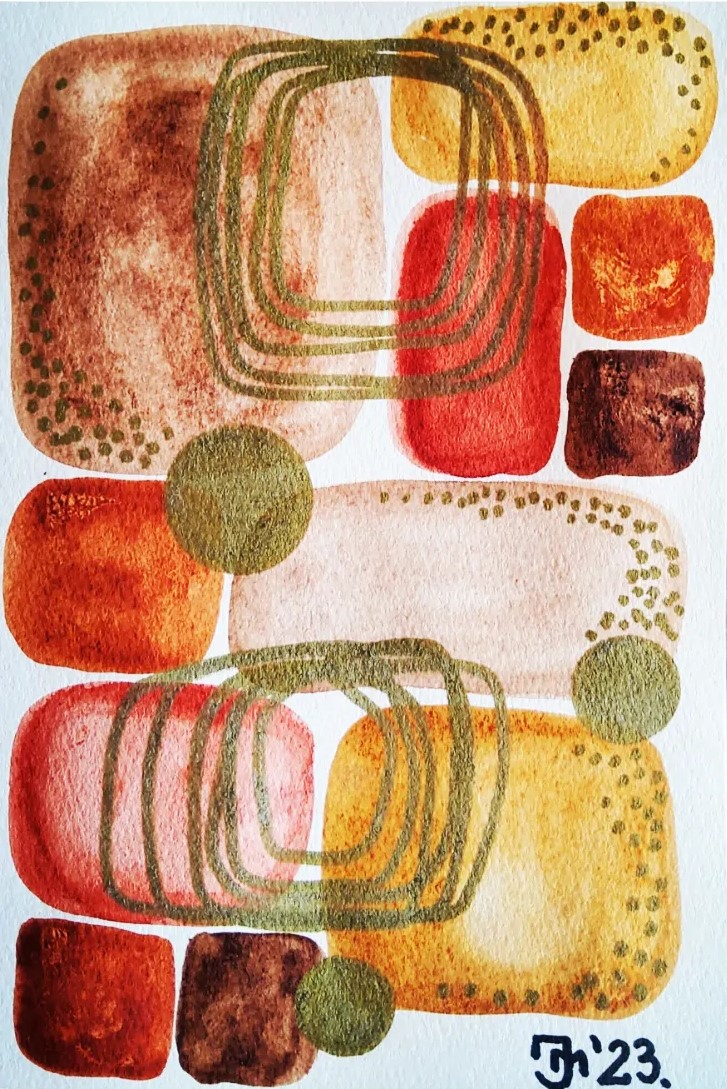Eliah (13,5x20) - Aquarel with acryl markers on cotton paper - Abstract work by Marzena Jotson
