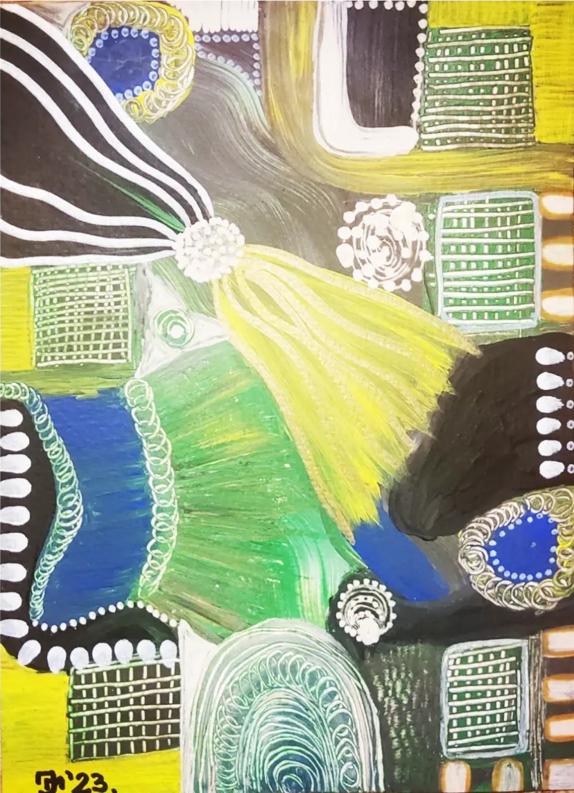 Energy without borders (19x26) - Acryl and mixed media on cotton paper - Abstract work by Marzena Jotson