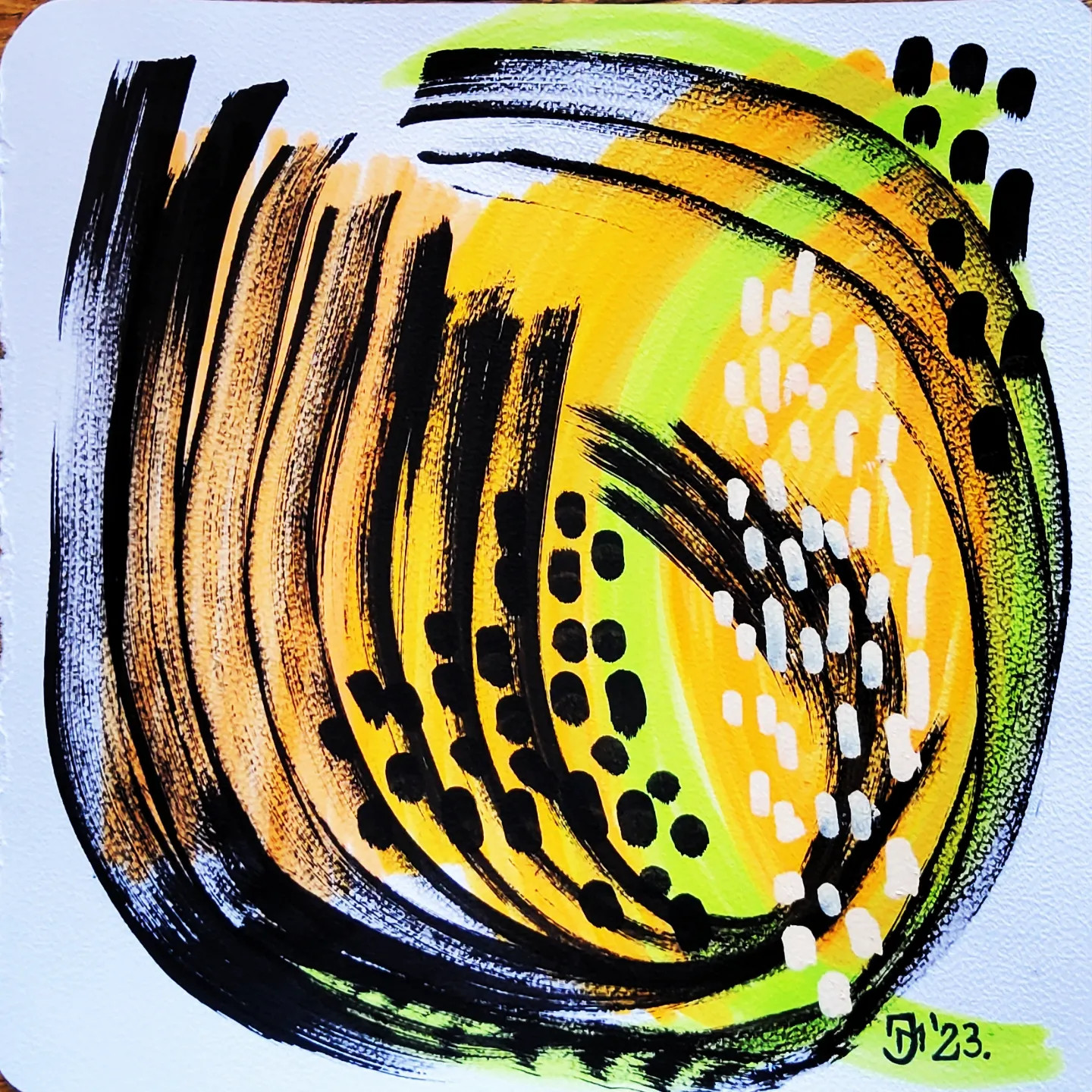 Happy hands (20x20) - Aquarel on cotton paper + mixed media - Abstract work by Marzena Jotson