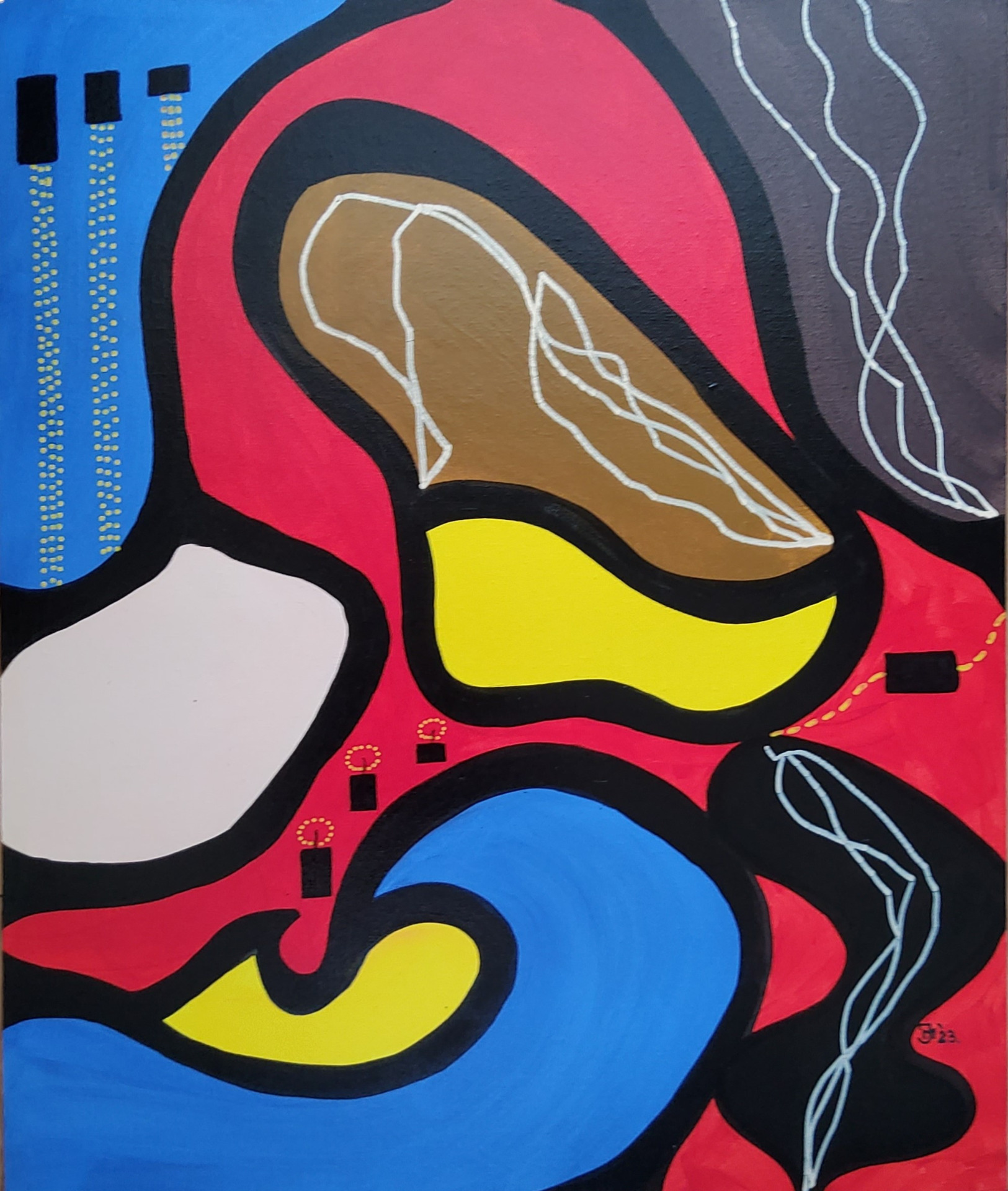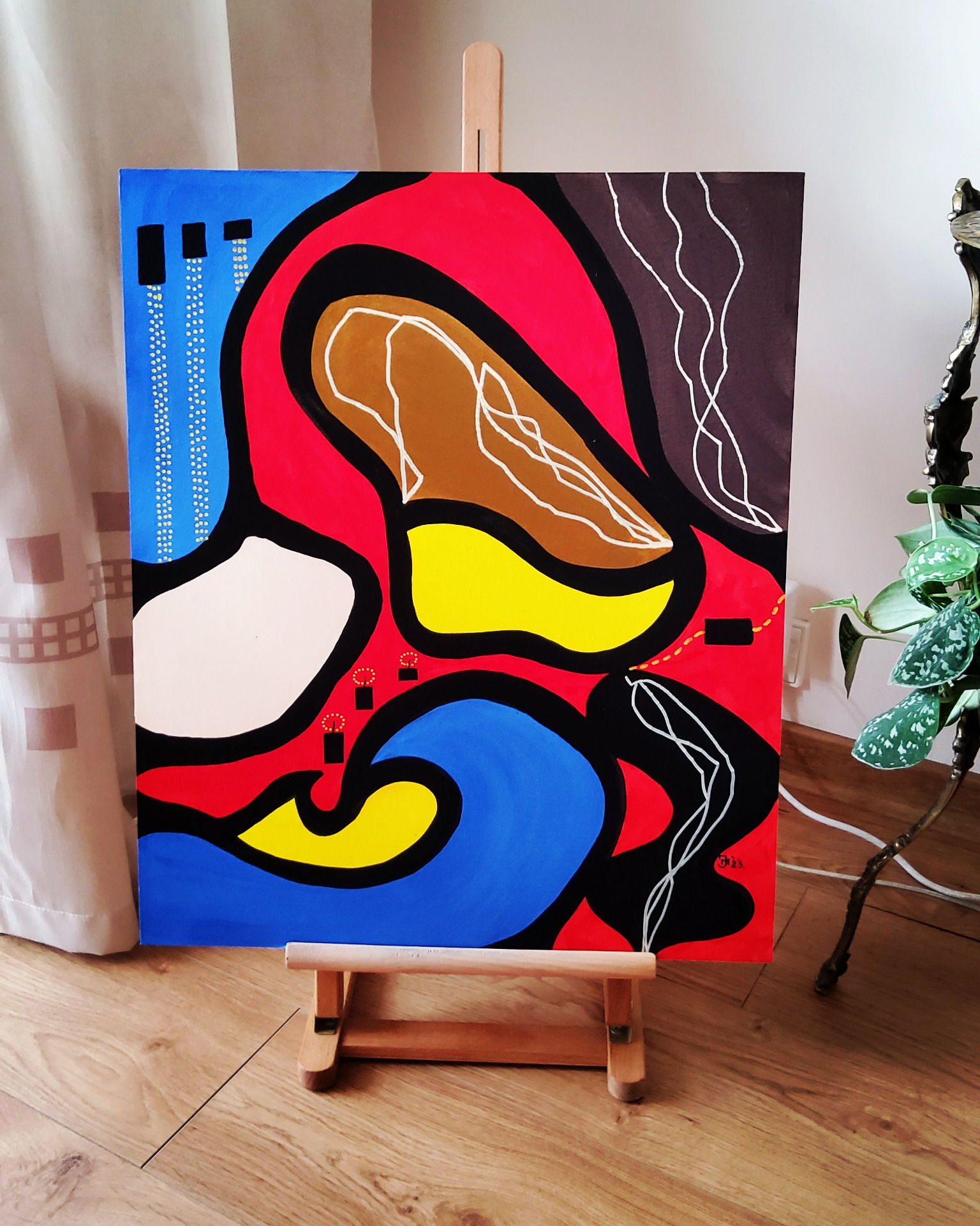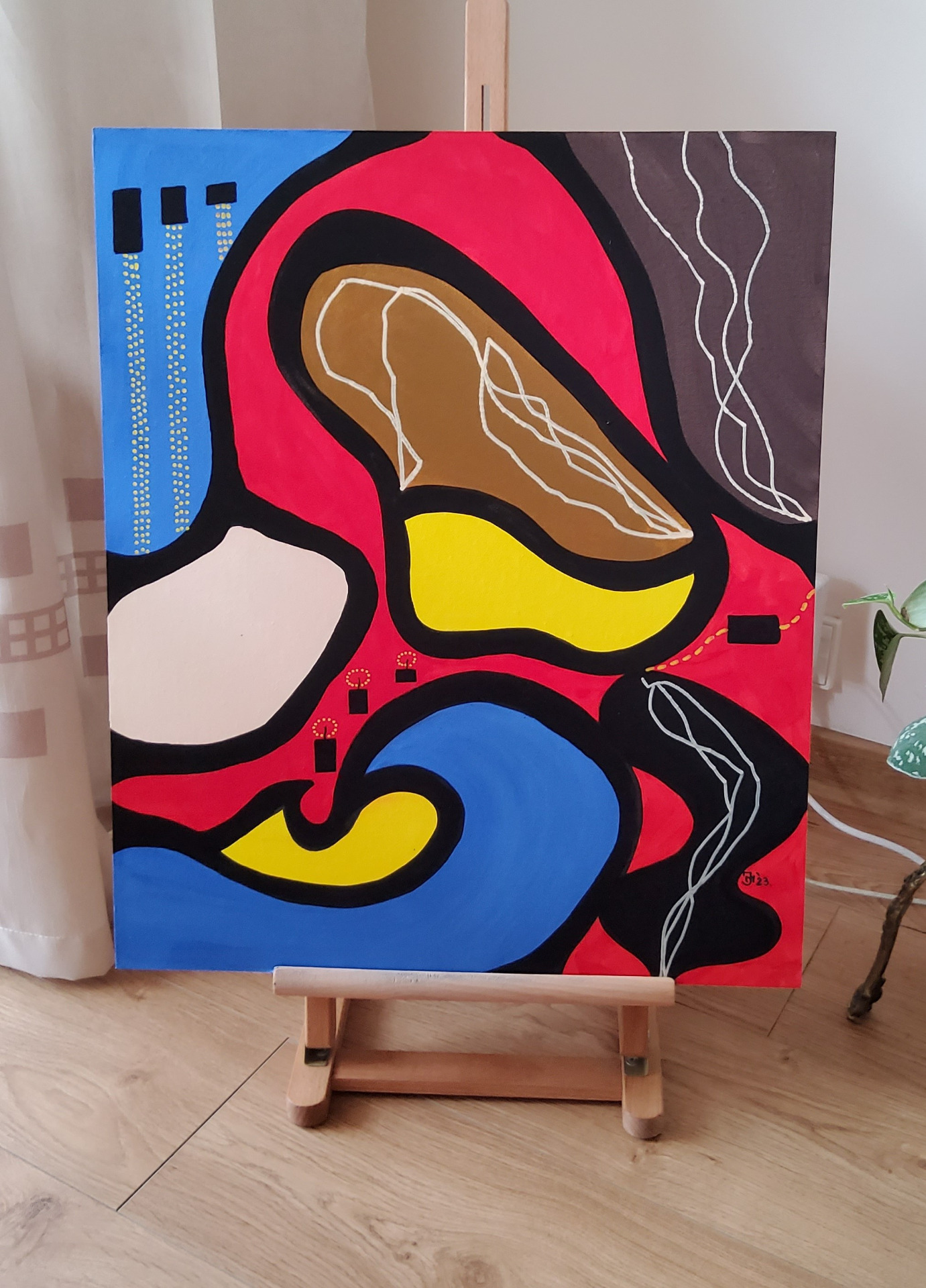 "Holiday battery charging". Acrylic on 100% cotton MDF, triple primed, 50×60cm, varnished.