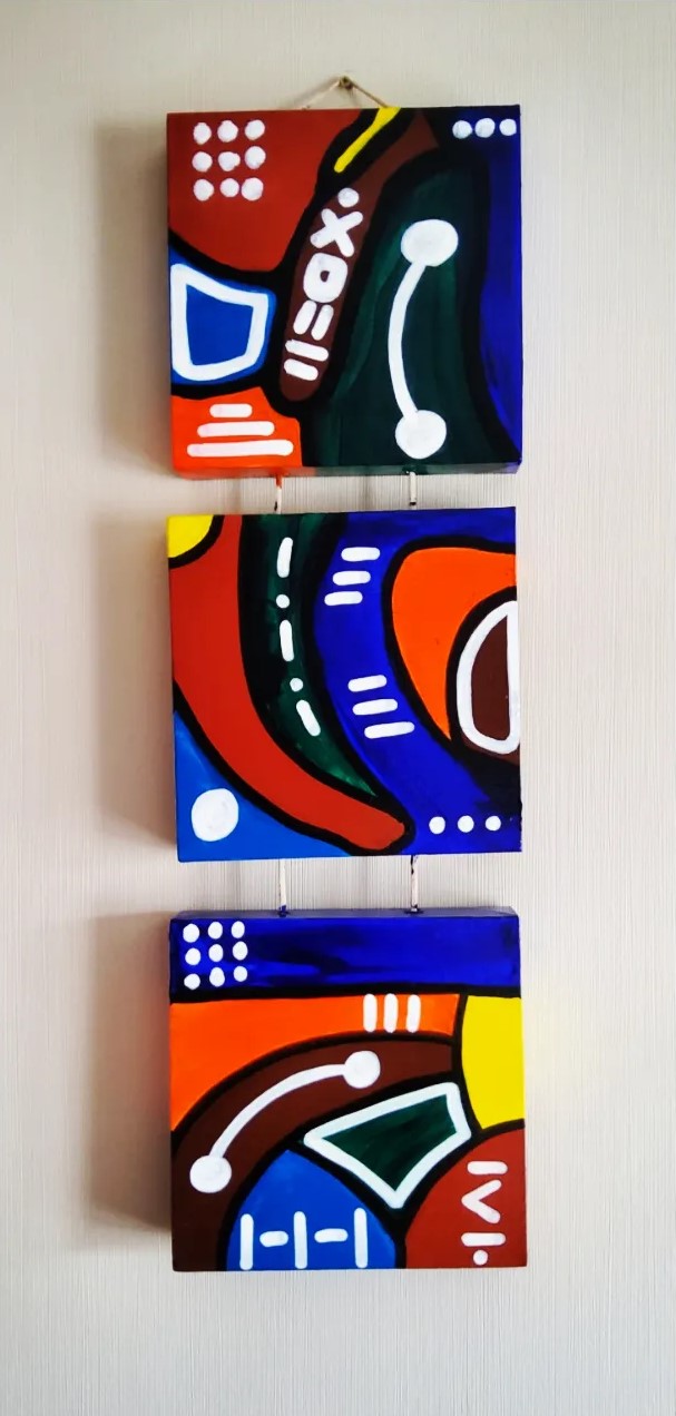 Magical Labyrinth (3 x 20x20x3.5) - Acryl on canvas (protected w varnish) - Abstract work by Marzena Jotson