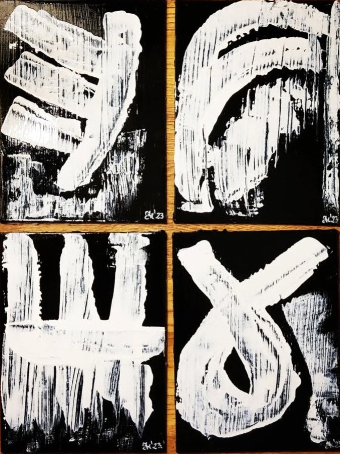 Quadriptych "Everyone has". Acrylic on 100% cotton MDF, triple primed, 15×20cm each, varnished.