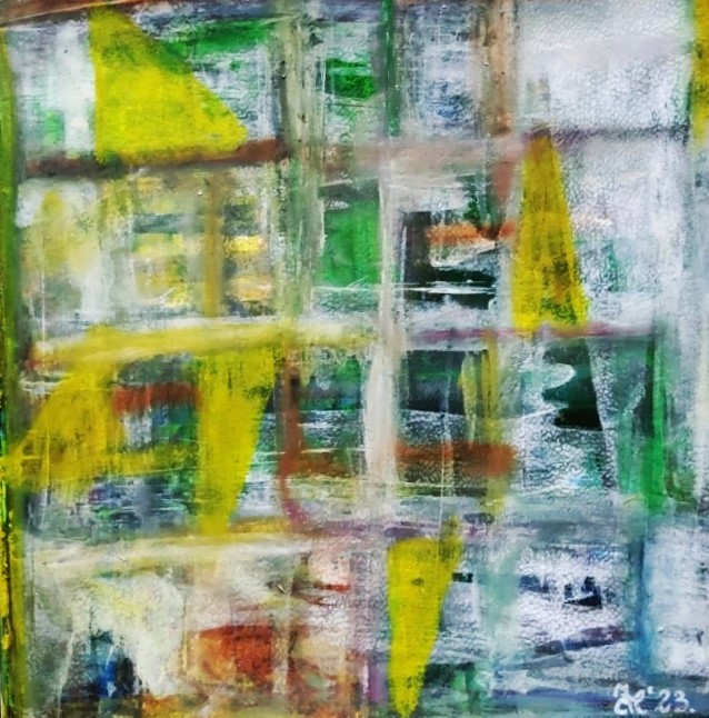Green windows (16x23) - Acryl on paper - Abstract work by Marzena Jotson