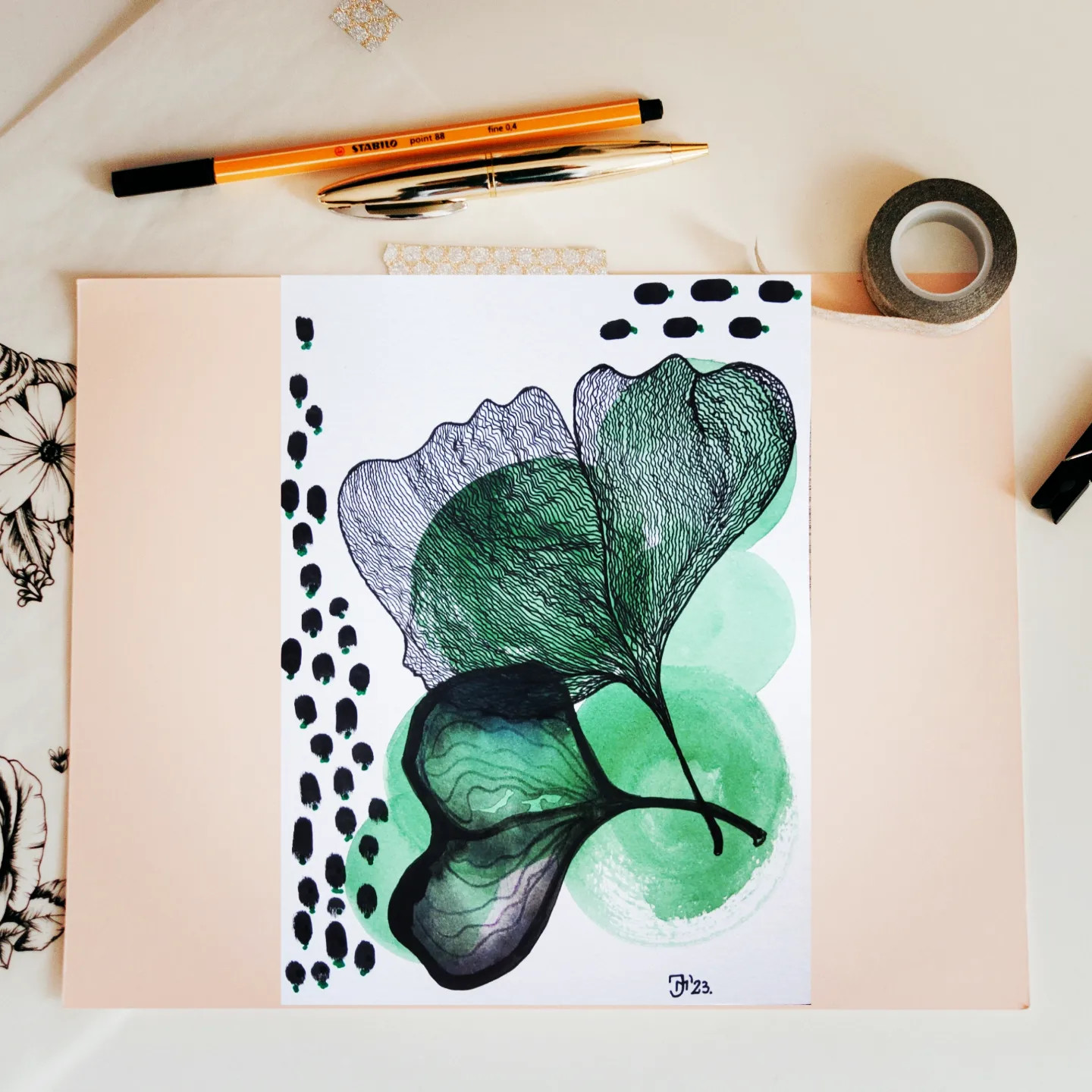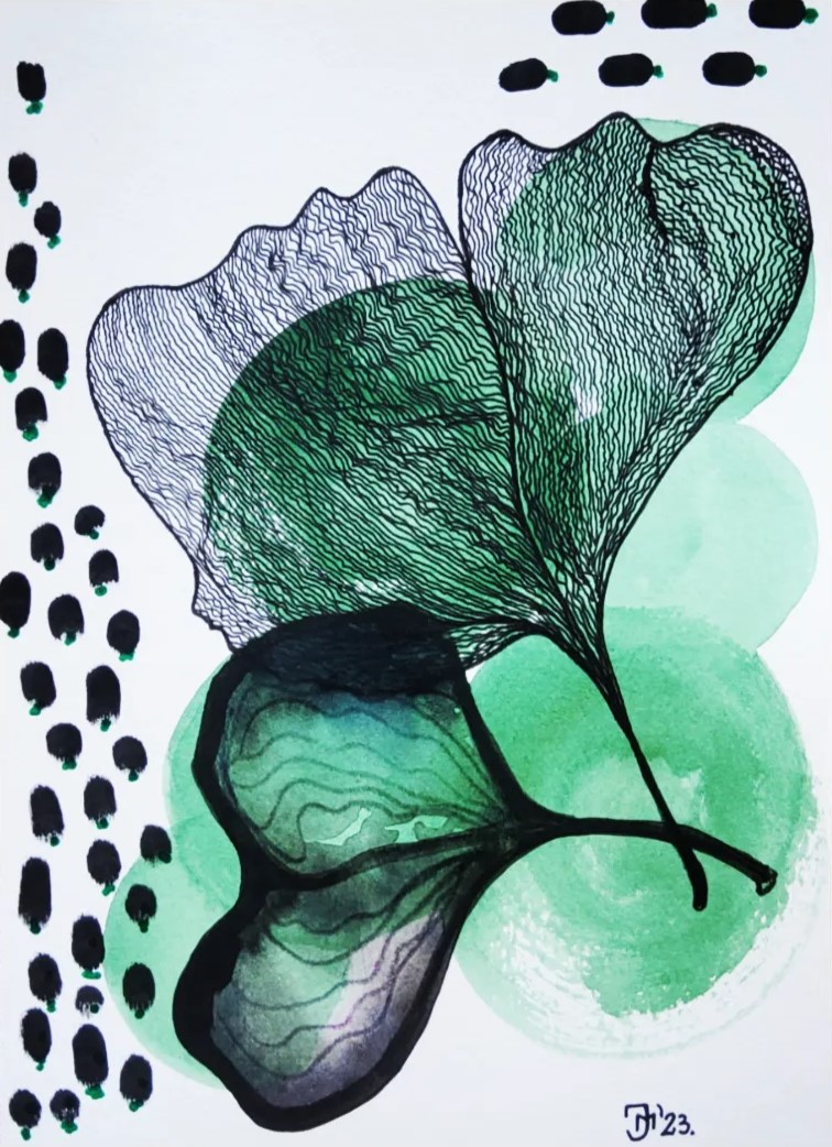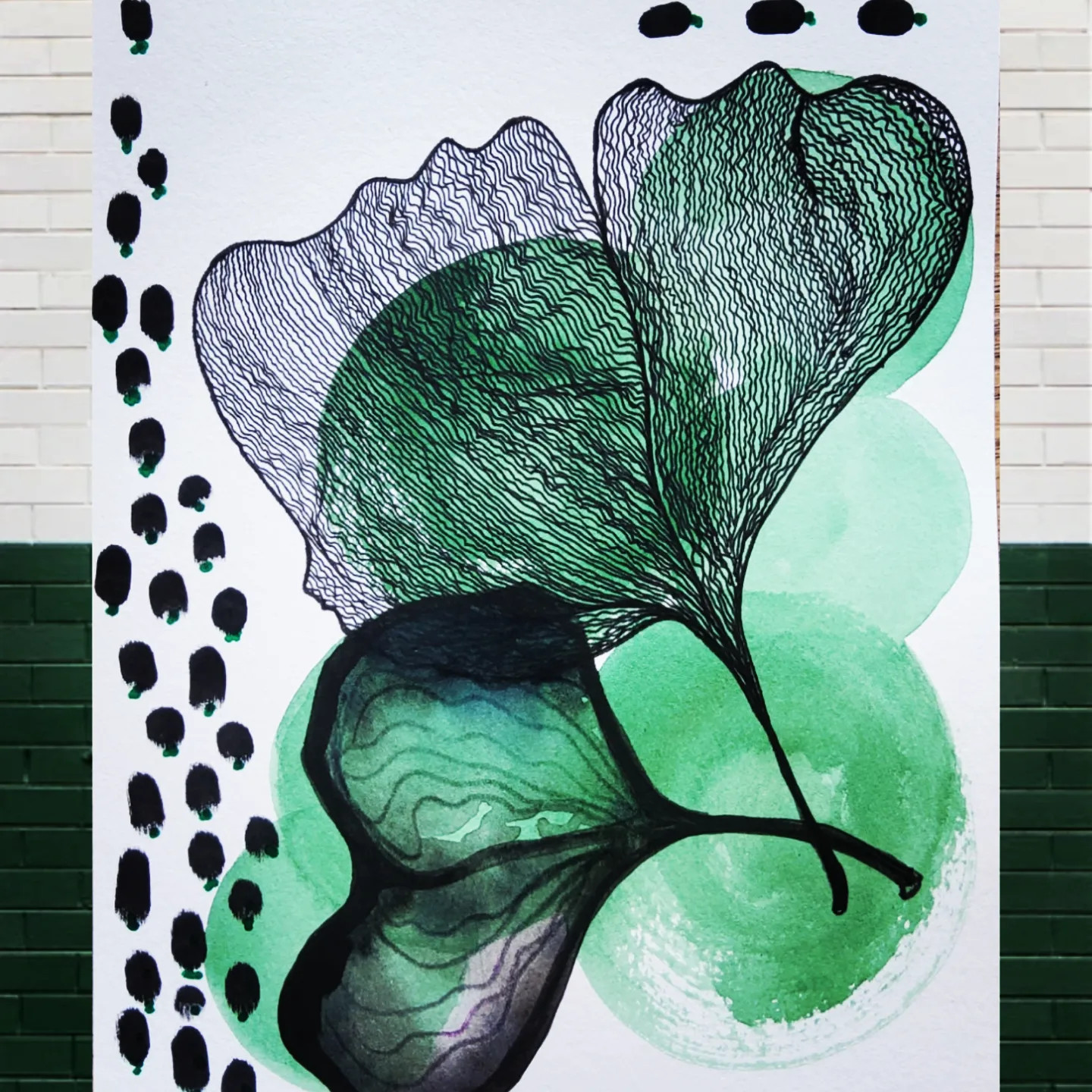 Plant Transparency (19x26) - Aquarel and mixed media on cotton paper - Abstract work by Marzena Jotson
