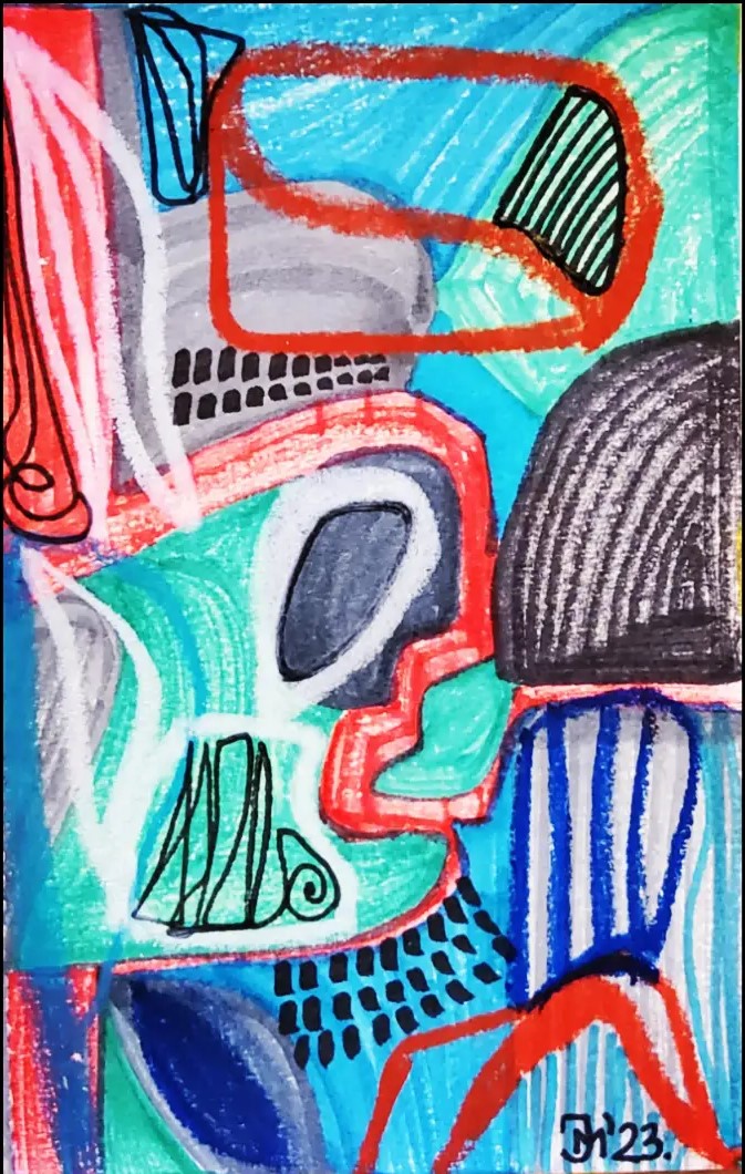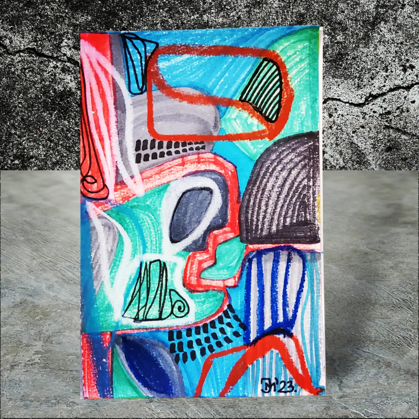 Elusive vision (13x20) - Watercolor pens and pastels on 13×20cm cotton paper - Abstract work by Marzena Jotson