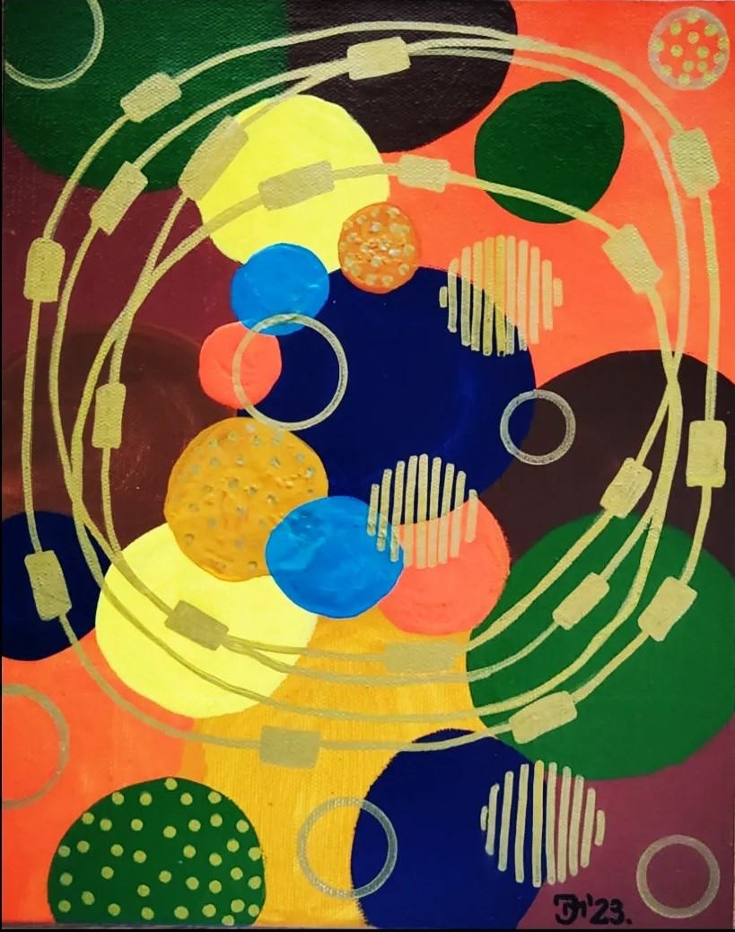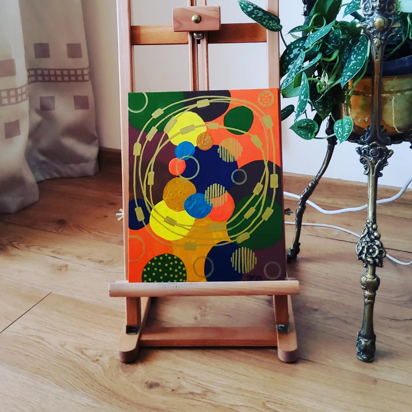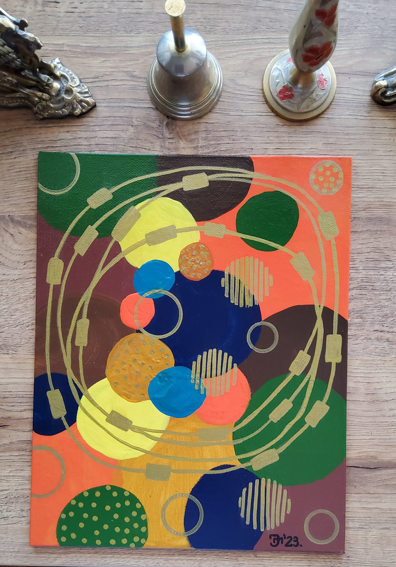 "Swirling dance of colors" (24x30) - Acryl and mixed media on a 100% cotton MDF base, triple primed and protected with varnish - Abstract work by Marzena Jotson