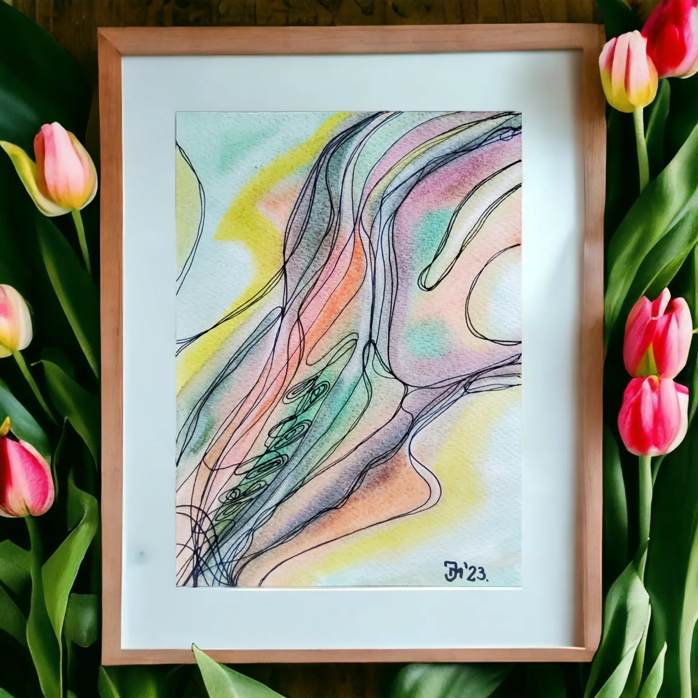 Symphony of Colors (19x26) - Aquarel and mixed media on cotton paper - Abstract work by Marzena Jotson