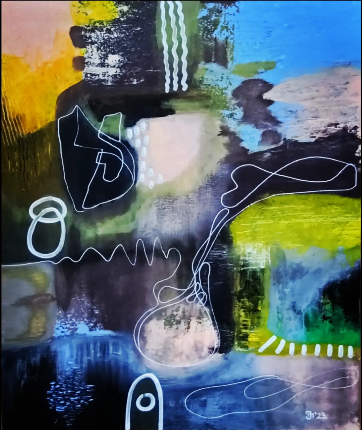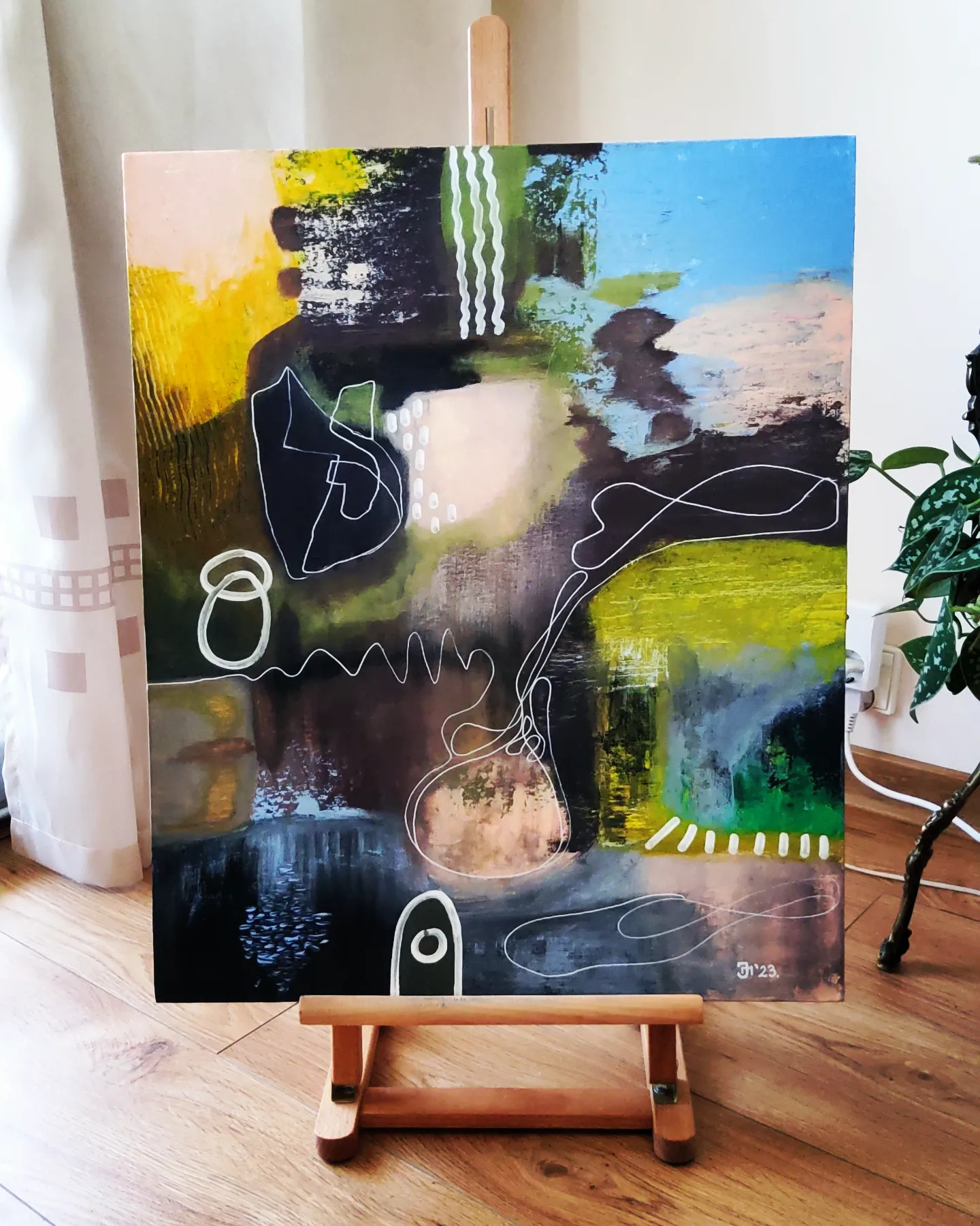 Without words (50x60) - Acryl and mixed media on a 100% cotton MDF base - Abstract work by Marzena Jotson